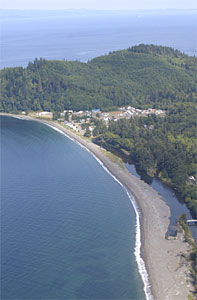 The Clallam River empties into the Strait here, causing a dynamic hydrology interaction and nutrient-rich water that provides shore and marine life with constant food sources. This is a great place to go out to kayak or surf if the waves are right, and it's also great for beachcombing and watching for marine life and birds.